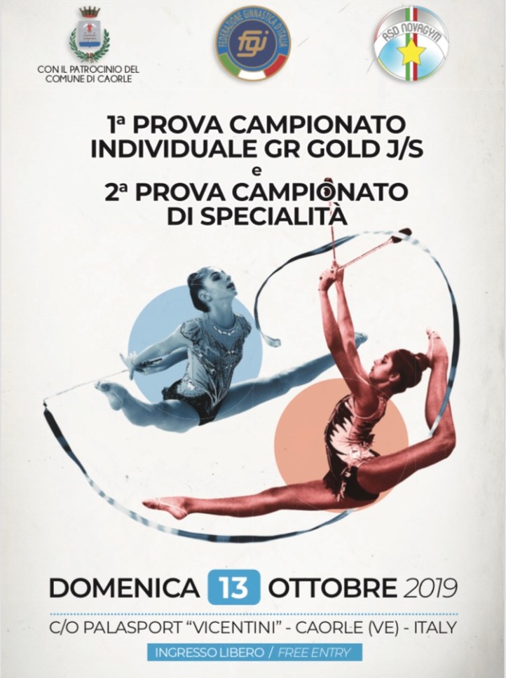 Vi aspettiamo per tifare le nostre atlete che gareggeranno nella 2^ prova di Campionato di Specialità Gold: Rossi Beatrice alla fune e al nastro e Tiepolo Elena alle clavette e alla palla.